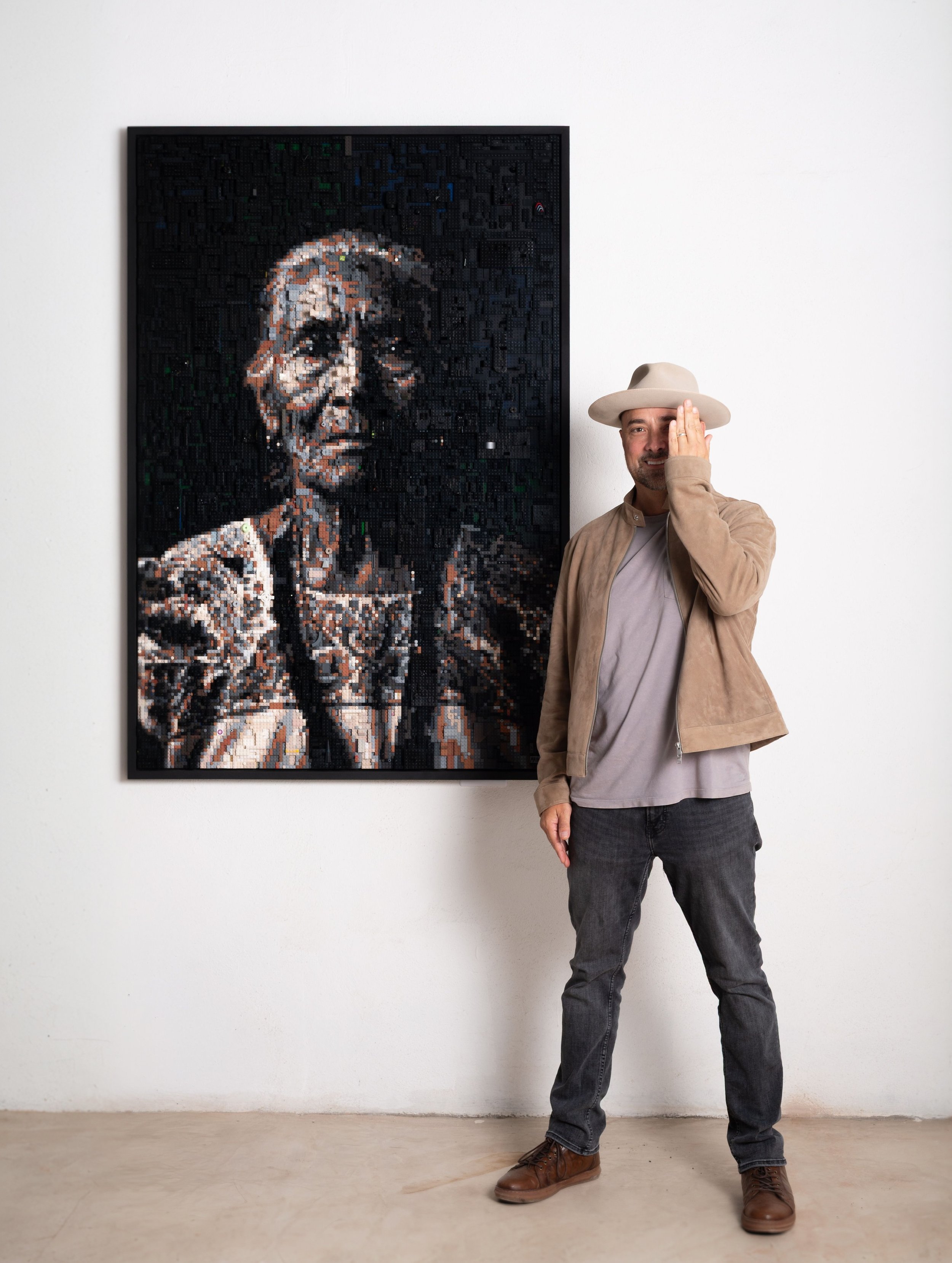 While Mayer’s technical process is central to the visual impact of his work, the choice of subject remains equally important. His portraits are carefully selected, and the meaning of each work is anchored in the image itself rather than in the novelty of the medium. As such, the final works function not merely as demonstrations of technique, but as considered outcomes in which material, image, and subject are closely aligned. The production of a single work often spans several months. Mayer’s process includes extensive preparation, image research, post-processing, physical construction, surface refinement, and the creation of custom-made frames. This methodical approach underscores the labor-intensive nature of the work and the degree of control exercised at every stage of production.